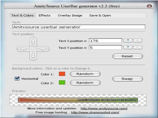 לבחור צבעים, אפקט מיוחד, דפוס, אפקט של זוהר, דימוי כיסוי כמו הרכב שלך. AmitySource Userbar Generator מאפשר